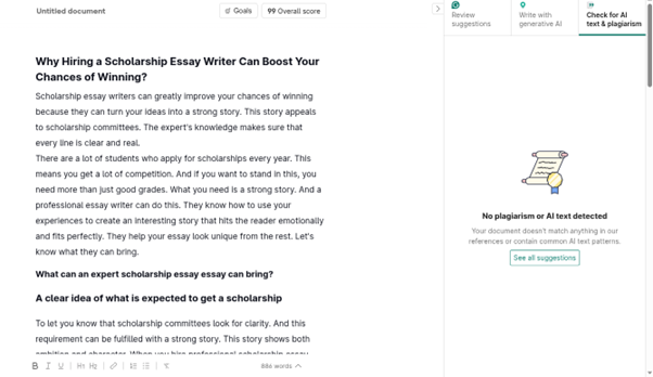 Professional writers will make sure that your story stays real. Plus, they polish your essay. They never make it sound fake. Instead of this, they bring out genuine emotions and lessons from life. This shows what kind of person you are. Simply, what we mean is that authenticity is a big part of getting scholarships. And a good writer can help you be yourself while still writing a story that stands out. They make it feel natural and one of a kind.
